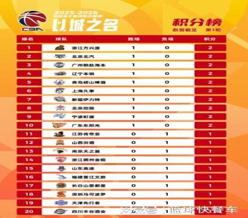 CBA首轮后最新排名出炉!广厦第1广东第10辽宁居第4四川垫底