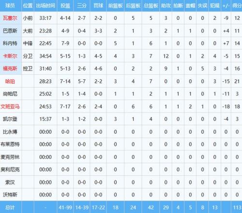 此役文班亚马继续替补出战,投篮17中7,其中三分6中2得到18分6板,正负值-18全场最低,表现一般或许跟赛前自己祖母离世有很大关系,赛后新闻发布会上潸然泪下,他才21岁普通大学生的年龄,很难承受住此种打击。